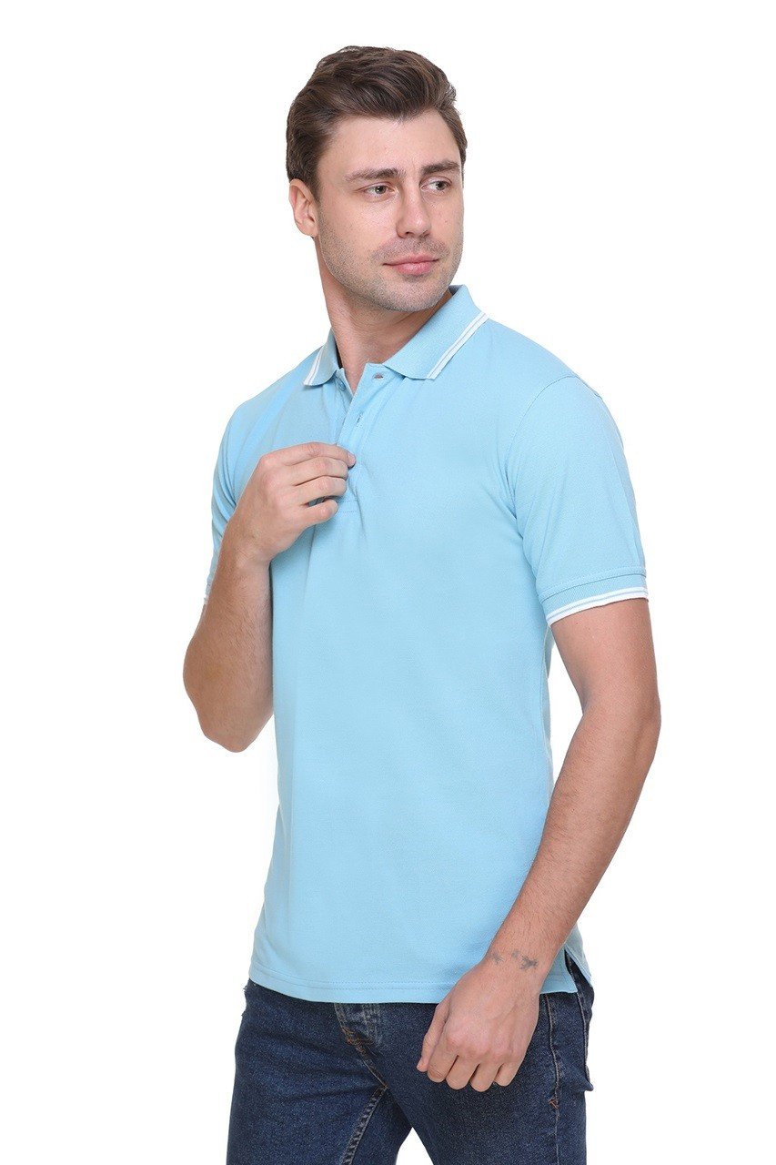Double Tipped Tipline Sky Blue Polo T-shirt