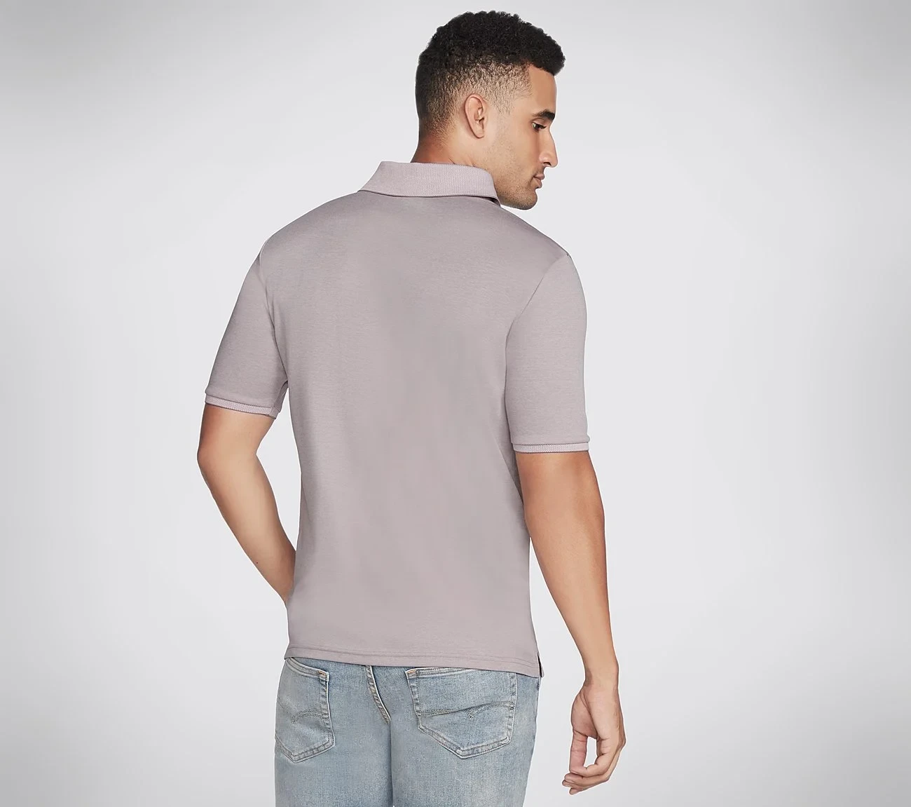 The Skechers Polo Neck T-Shirt in Lavender is a stylish and modern essential, ideal for versatile and effortless fashion.