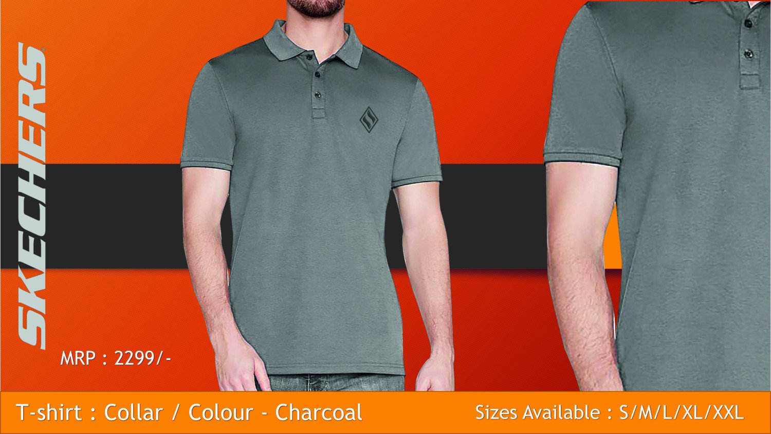 The Skechers Polo Neck T-Shirt in Steel Grey is a stylish and modern essential, ideal for versatile and effortless fashion.