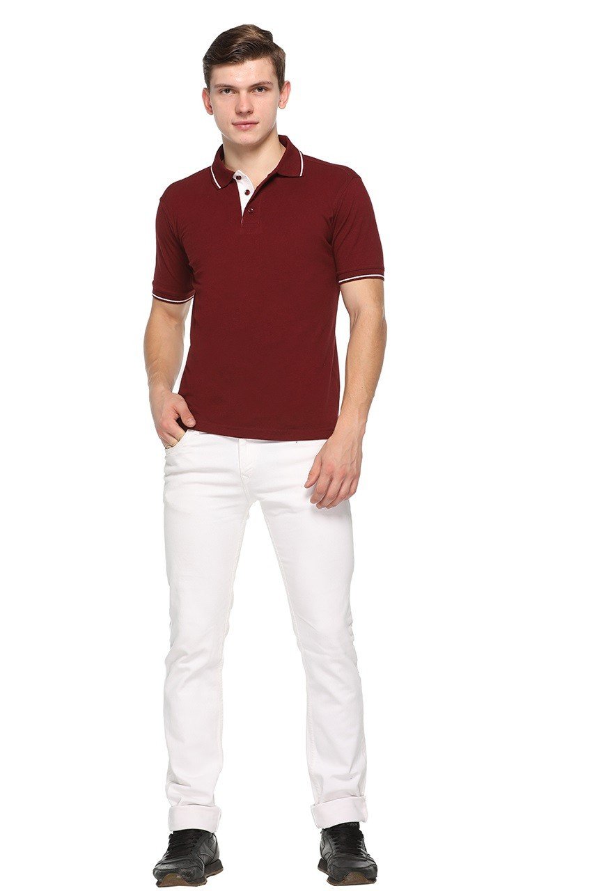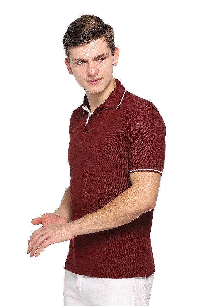Pikmee Highline Maroon Polo T-shirt with Single Tipping