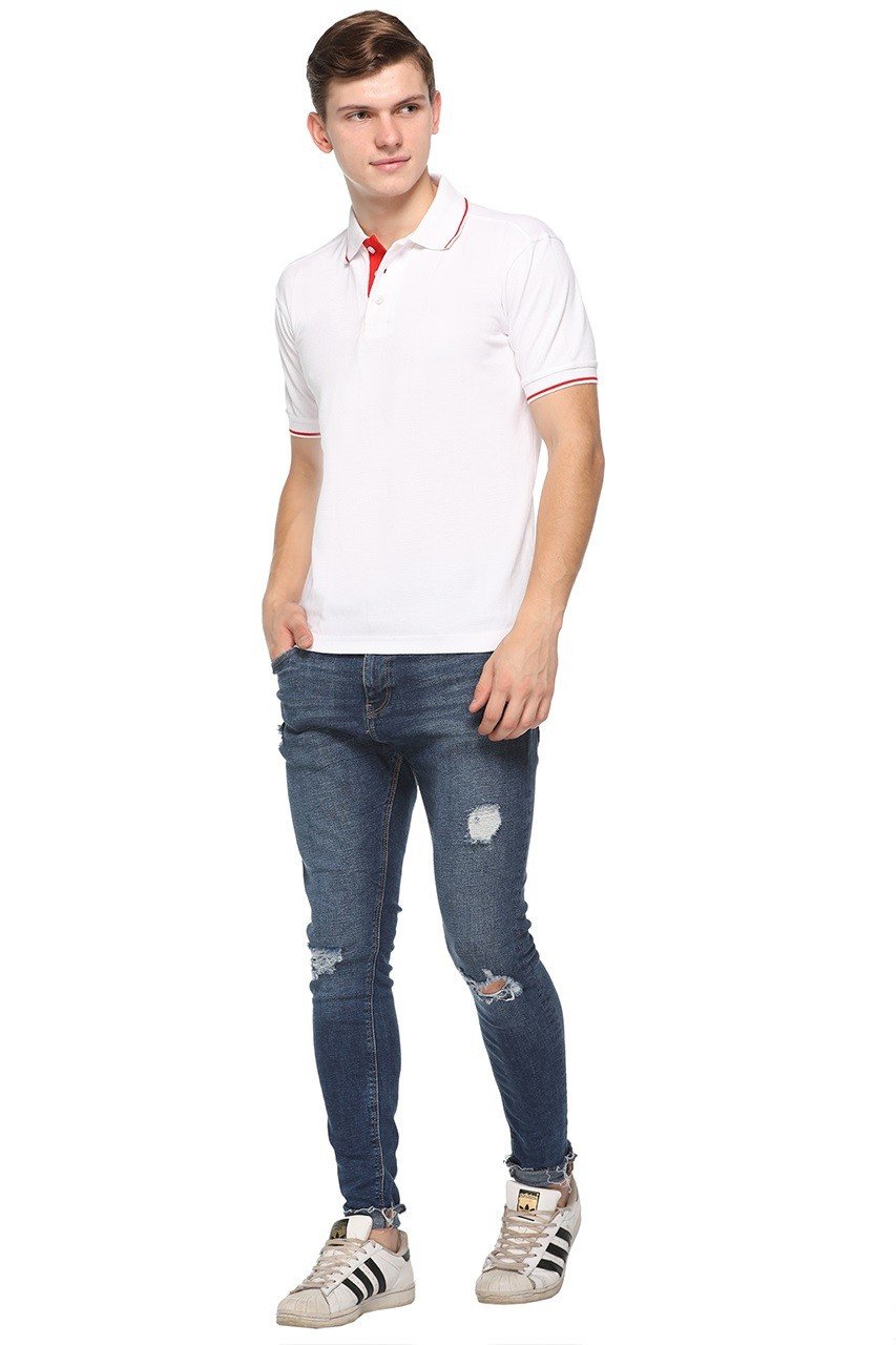 - Sporty Red Line Detailing: The standout red line design across the collar and sleeves adds a modern, dynamic touch to the traditional white polo, making it perfect for fashion-forward individuals.