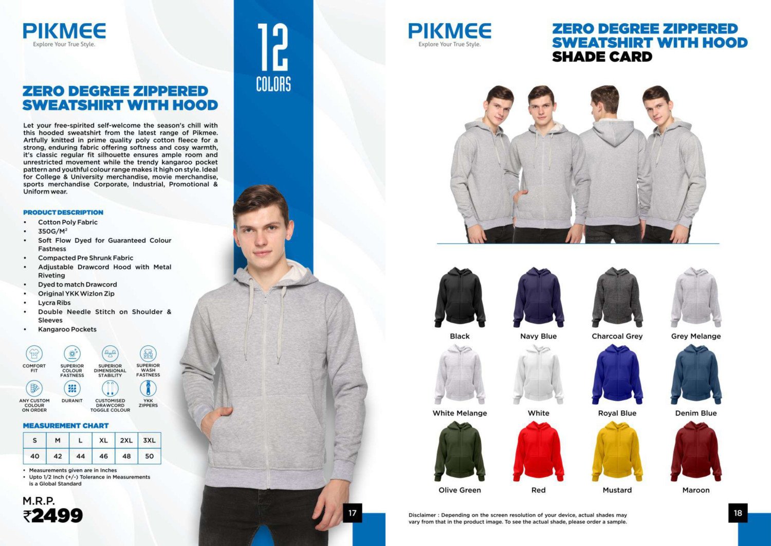 Lycra Rib with double needle stich on shoulder & sleeves. Original YKK wizion Zip with kangaroo pocket.