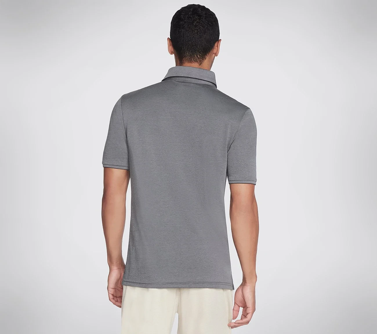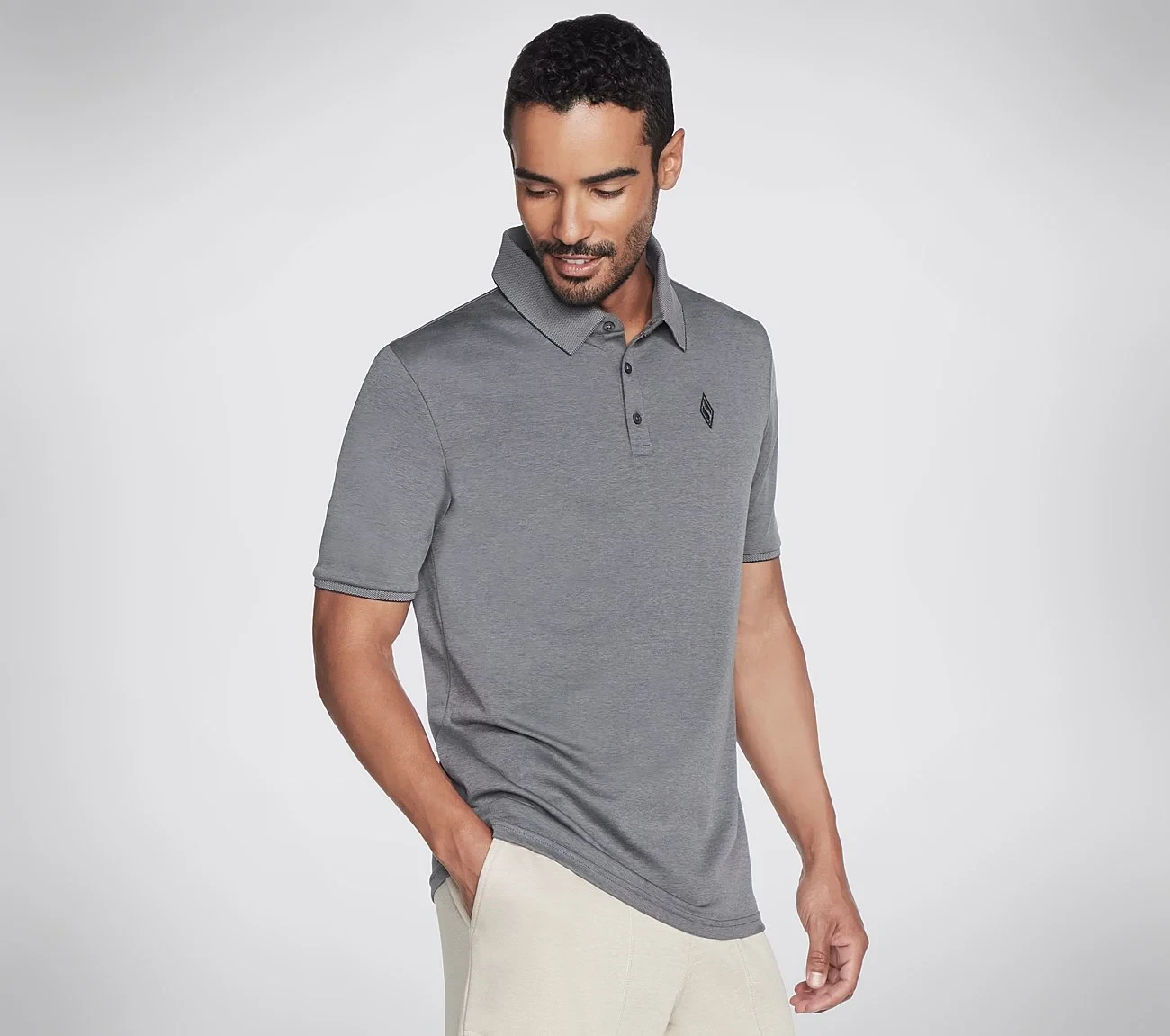 The Skechers Polo Neck T-Shirt in Steel Grey is a stylish and modern essential, ideal for versatile and effortless fashion.