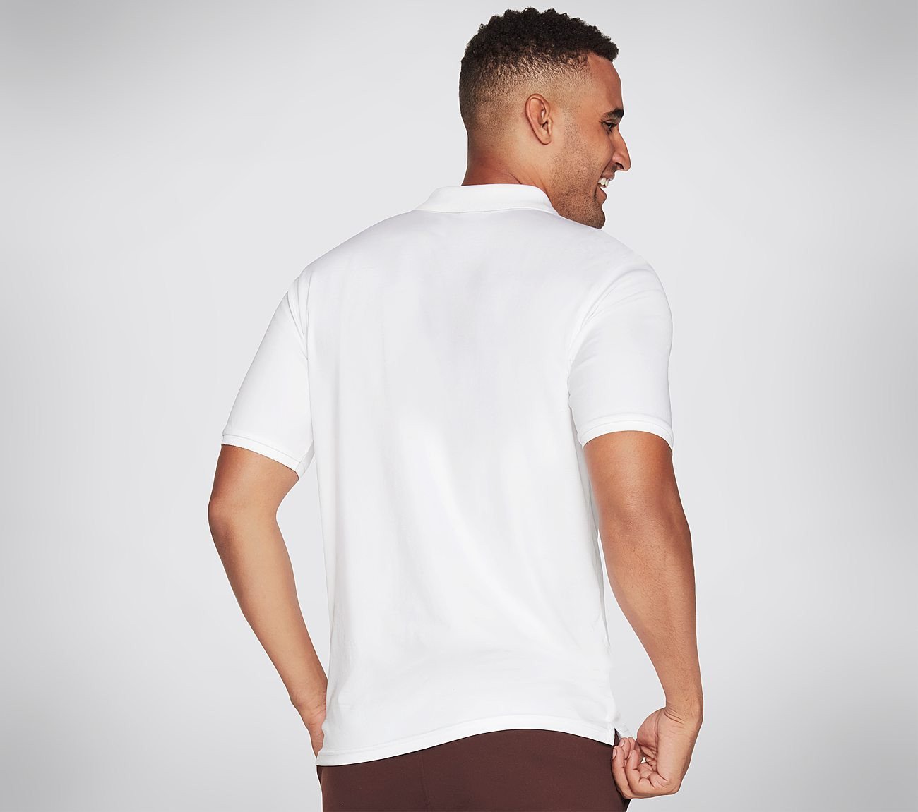 The Skechers Polo Neck T-Shirt in classic white is a versatile addition to your wardrobe, blending casual elegance with premium comfort.