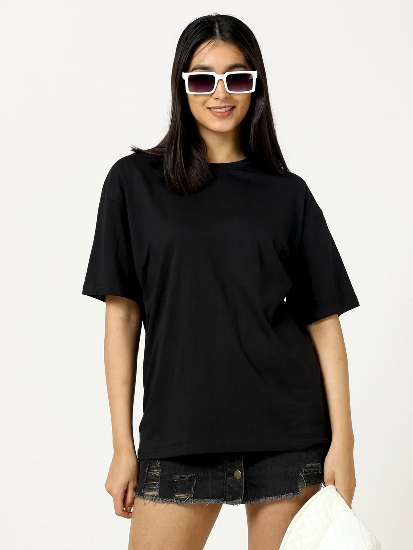 Introducing our Women's Cotton Oversize T-Shirt in classic black, the perfect addition to any wholesale collection. Crafted from 100% soft, breathable cotton, this t-shirt offers exceptional comfort and a relaxed fit, making it ideal for casual wear.